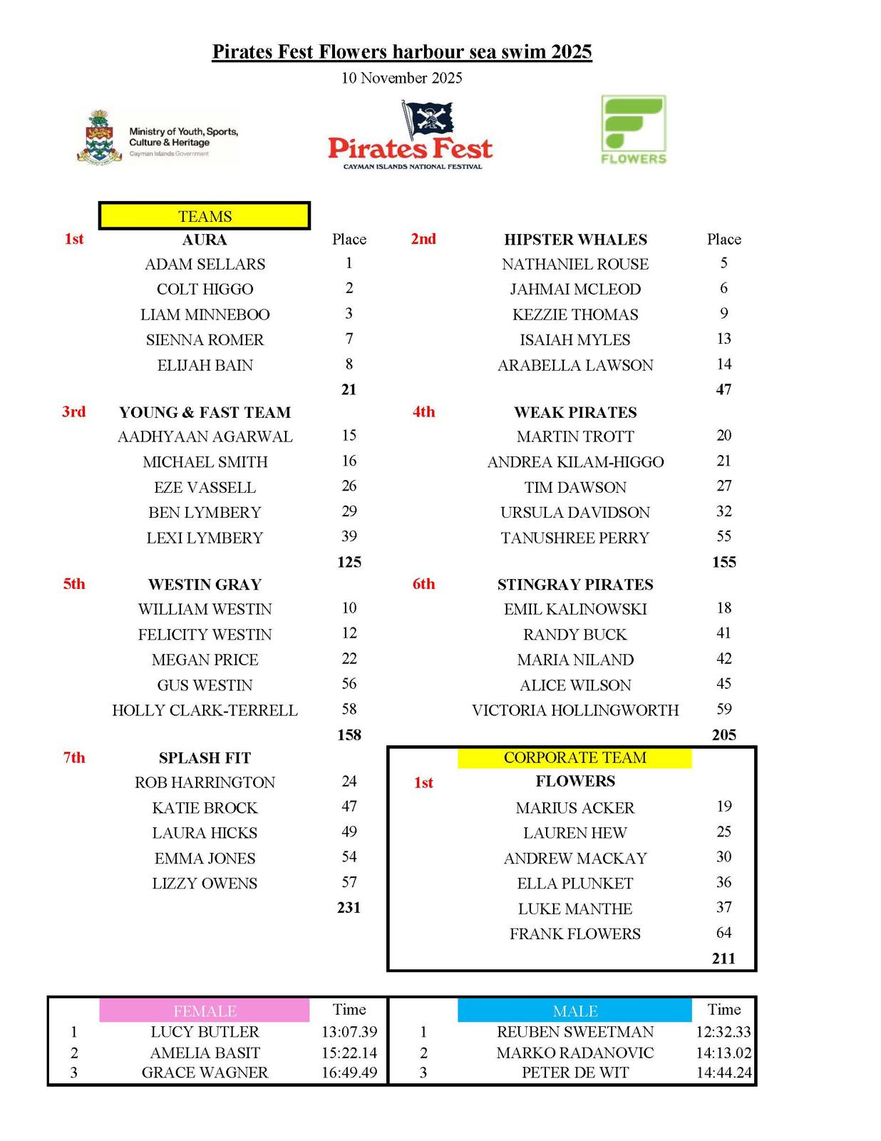 🏢 Corporate Team (5 swimmers): CI$50 each | CI$250 per team