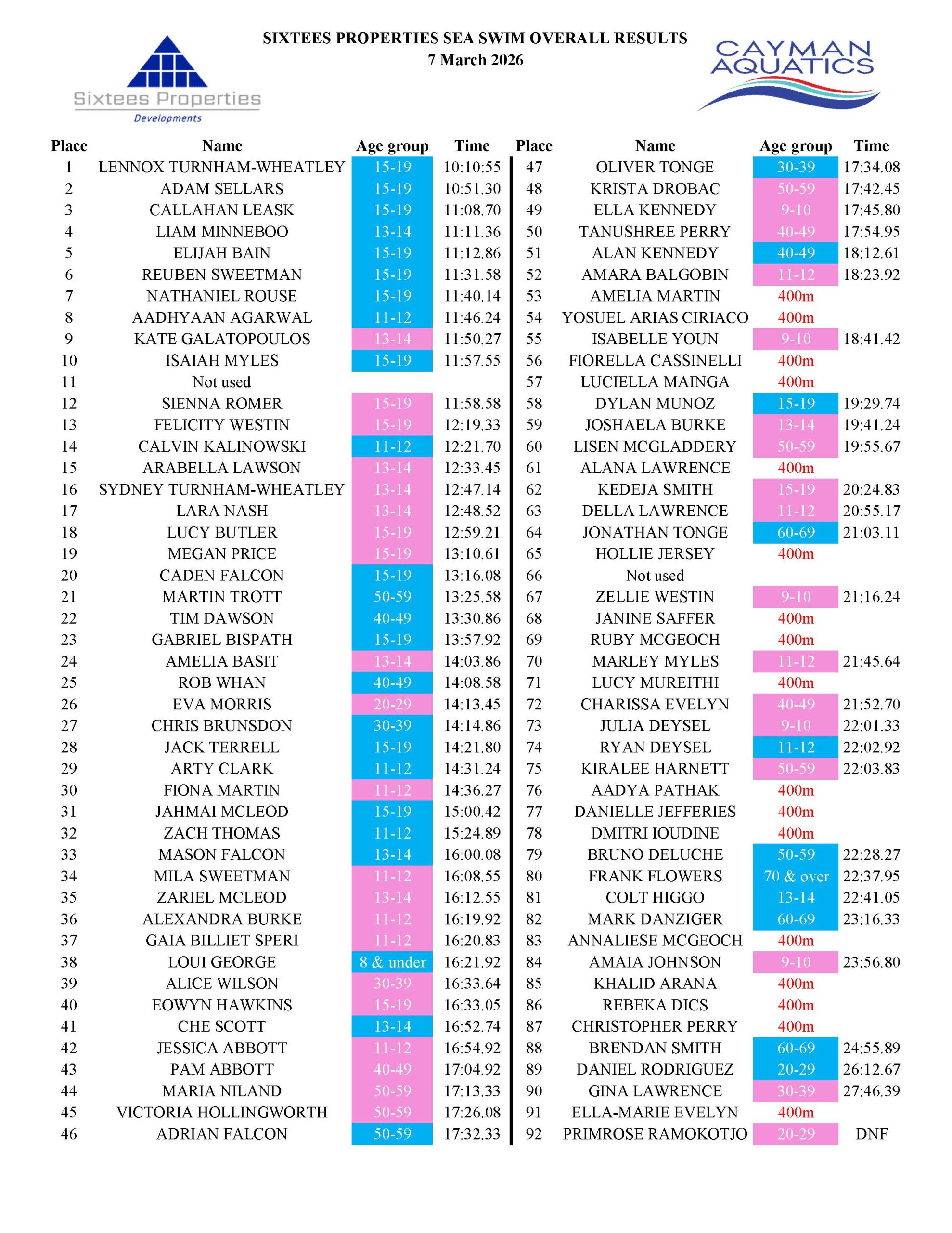 Course: Circular course starting and ending at Governor’s Beach.